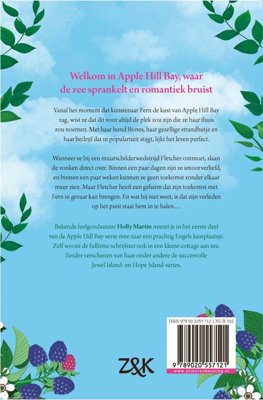 'Zonnestralen boven Blackberry Beach', een heerlijke romance van Holly Martin, gaat over kunstenaar Fern. Vanaf het moment dat Fern de prachtige kust van Apple Hill Bay zag, wist ze dat dit voor altijd de plek zou zijn die ze haar thuis zou noemen. Met haar hond Bones, haar strandhutje en haar bedrijf dat in populariteit stijgt, lijkt het leven perfect. Wanneer ze Fletcher ontmoet, slaan de vonken direct over. Maar Fletcher heeft een geheim, waardoor hij denkt dat hij Fern niet het leven kan geven dat ze verdient. En wat hij niet weet, is dat zijn verleden op het punt staat hem in te halen… 'Zonnestralen boven Blackberry Beach' is het eerste deel in de Apple Hill Bay-serie. Eerder verschenen van Holly Martin ook de populaire Jewel Island- en de Wishing Wood-series.