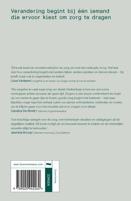 Zorgen is een keuze nodigt je uit om stil te staan bij de dilemma's van de zorg van vandaag. Niet om ze snel op te lossen, maar om ze te begrijpen en te ontdekken welke keuzes je hebt. Het laat zien hoe tijd, taal, emoties en waardigheid onze manier van zorgen beïnvloeden en hoe je binnen de kaders van het systeem toch ruimte kunt creëren voor betrokken, menswaardige zorg.