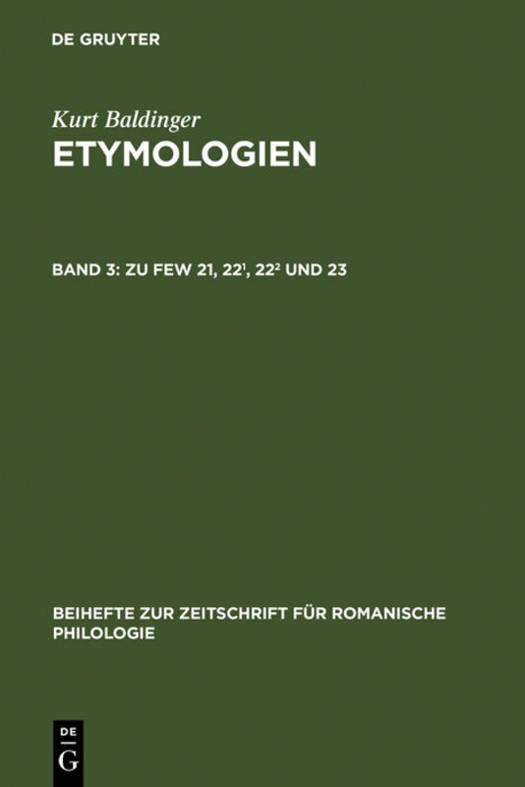 In dem 3. und letzten Ergänzungsband zu den Bänden 21-23 des FEW (Walther von Wartburg, Französisches Etymologisches Wörterbuch), den Materialien unbekannten oder unsicheren Ursprungs, werden zu den Bänden 21, 22/1, 22/2 und 23 des FEW von zahlreichen Mitarbeitern z.T. noch unveröffentlichte Etymologien vorgestellt. Ferner sind in diesem Band bereits publizierte Lösungsvorschläge, weiterführende bibliographische Hinweise, Vordatierungen und Korrekturen etc. ebenso wie Nachträge und Ergänzungen zu den in Etymologien 1 und Etymologien 2 bereits publizierten Artikeln eingearbeitet. Das Darstellungsprinzip folgt wieder der begrifflichen Anordnung der Materialien und dem Artikelaufbau der Bände 21--23 des FEW. Ein alphabetisches Gesamtregister für Etymologien 1-3 und eine Kurzbibliographie schließen den Band ab.