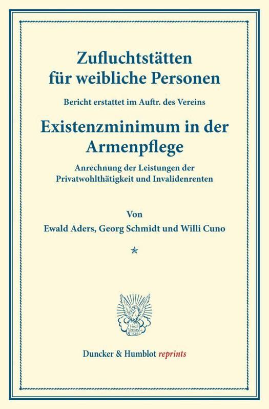 Bericht Erstattet Im Auftr. Des Vereins. - Existenzminimum in Der Armenpflege. Anrechnung Der Leistungen Der Privatwohlthatigkeit Und Invalidenrenten. Von Georg Schmidt / Willi Cuno. (Schriften Des Deutschen Vereins Fur Armenpflege Und Wohlthatigkeit