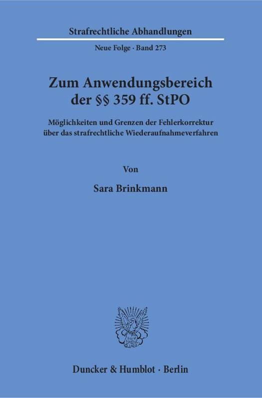 359 ff. StPO deutlich weiter gefasst werden kann, als es der Titel des Vierten Buches der Strafprozessordnung suggeriert, und dass im Wiederaufnahmeverfahren enormes Potenzial steckt, Fehler aufzufangen, die auch in einem bestmöglich ausgeformten Strafverfahren nicht auszuschließen sind.