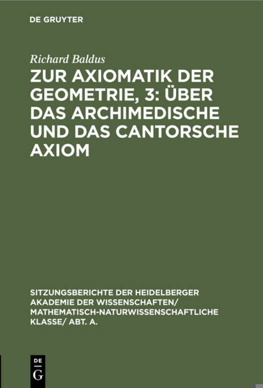 Zur Axiomatik Der Geometrie, 3: Über Das Archimedische Und Das Cantorsche Axiom