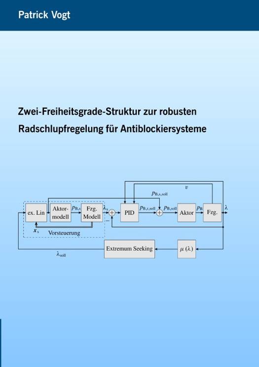 In dieser Arbeit wird ein modellbasierter Ansatz zur Regelung des Radschlupfes vorgeschlagen, der aus einer Zwei-Freiheitsgrade-Struktur mit nichtlinearer modellbasierter Vorsteuerung und einer robust entworfenen Rückführung mittels Gain-Scheduling besteht. Für die Vorsteuerung wird ein Ansatz über die exakte Eingangs-/Ausgangslinearisierung gewählt, mit dem sich das nichtlineare System bezogen auf das Ein-/Ausgangsverhalten wie ein lineares System regeln lässt. Für die Rückführung wird ein Gain-Scheduling über die Schedulingparameter Fahrzeuggeschwindigkeit und Radschlupf durchgeführt, um die durch die hohe Parameterunsicherheit in der Reifenkennline und die reziproke Abhängigkeit der Systemdynamik von der Geschwindigkeit den variablen Parameterbereich in kleinere Unsicherheitsbereiche zu unterteilen, für die anschließend ein linearer Regler mit fester Struktur über die Methode der robusten Polbereichsvorgabe entworfen wird. Basierend auf diesem Schlupfregler wird in einem zweiten Schritt ein Algorithmus verwendet, der in der Lage ist, das Maximum der Reibwertkennlinie einzuregeln, um den verfügbaren Kraftschluss bestmöglich auszunutzen, das sog. Extremum Seeking. Der gesamte Reglerentwurf erfolgt dabei rein zeitdiskret, um die charakteristischen Effekte der Diskretisierung bei einer digitalen Regelung behandeln zu können.